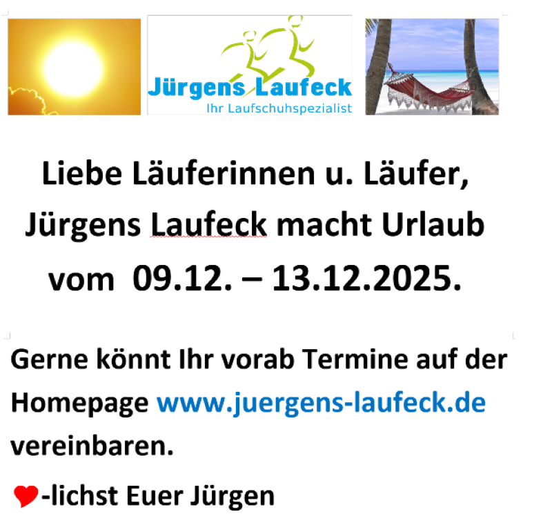 Um eine gezielte, individuelle Laufschuhberatung durchführen zu können, möchte ich mir für jeden Kunden ausreichend Zeit nehmen, um gegebenenfalls auf spezifische Probleme einzugehen.